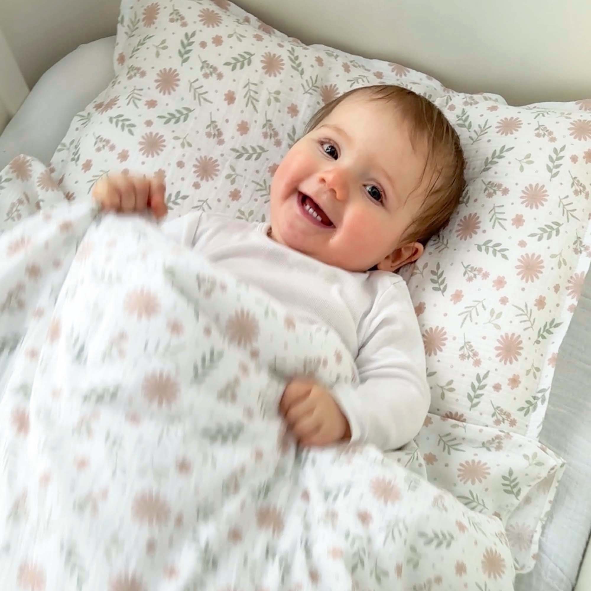 Skapa en giftfri, ekologisk sovplats för bebisen med bäddset och lakan i 100% ekologisk bomull.