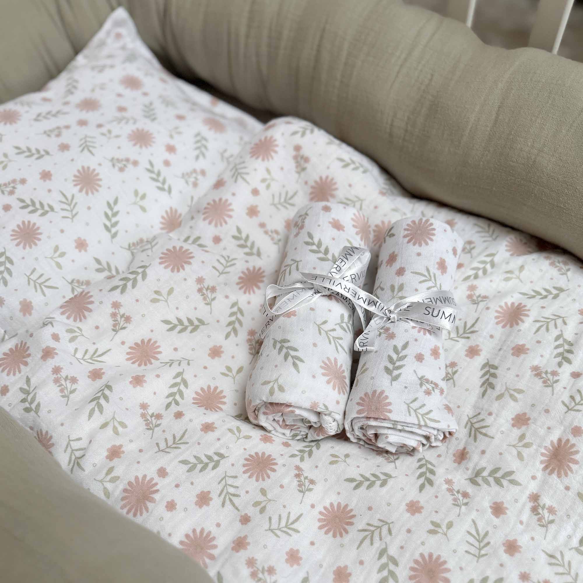 Baby Bedding Set in Crinkled Cotton Muslin in calm, beautiful colors perfect for a children's room.