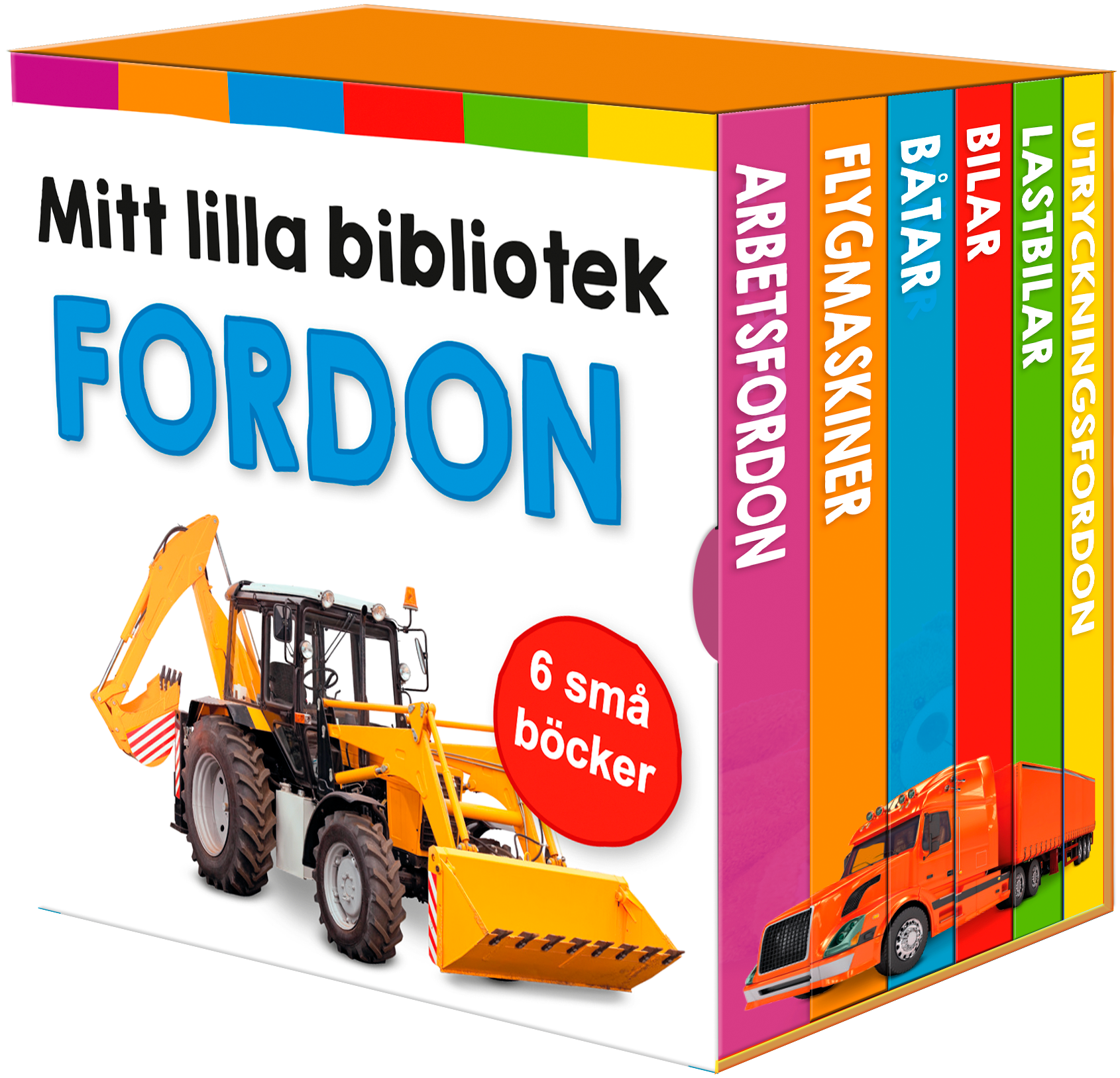 Läs orden högt och låt barnet bläddra i böckerna. De färgglada bilderna gör det lätt och roligt att lära sig de första fordonen.