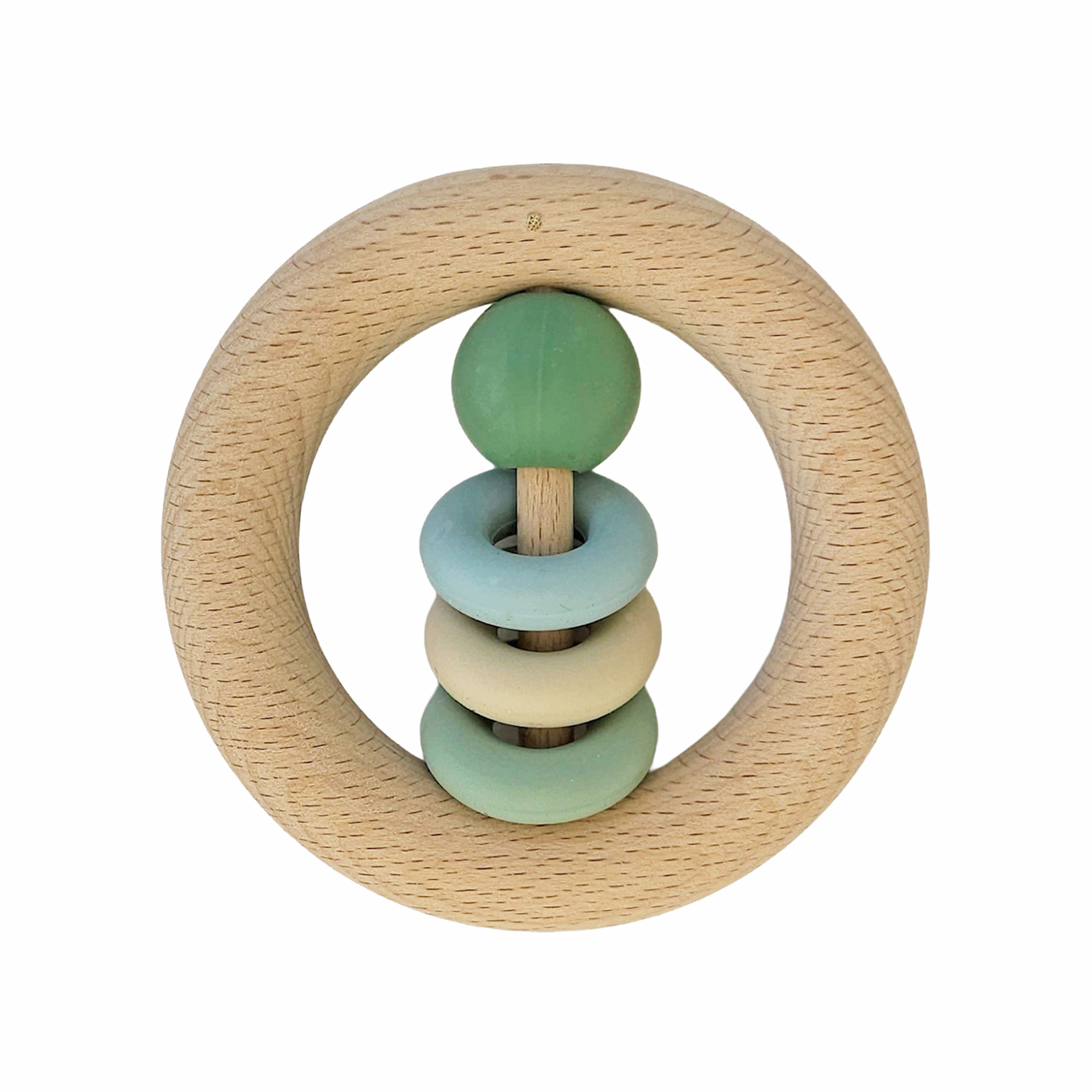 Den här träskallran för babyn är tillverkad av FSC-certifierat bokträ och mjuka ringar av livsmedelsgodkänd silikon som är godkänd enligt både FDA och LFGB.